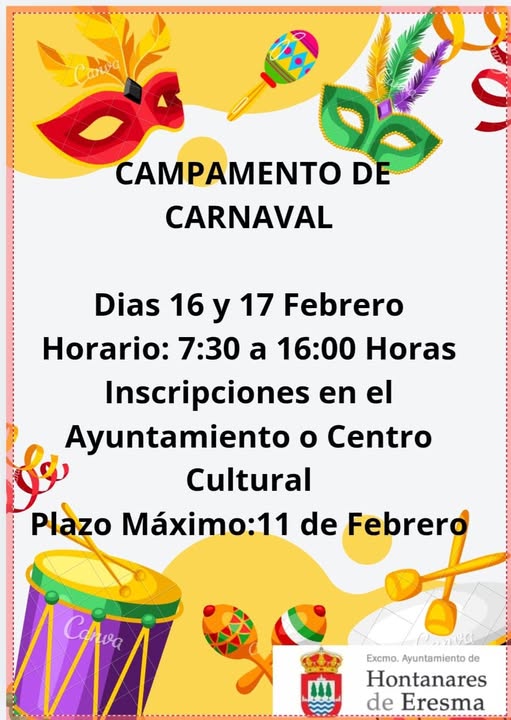 PROGRAMACIÓN DE CARNAVAL 2026 PARA TODAS LAS EDADES. ARRANCAREMOS EL VIERNES 13 CON LA FIESTA AMENIZADA POR LA PIZCARA MUSIC, CON FIESTA DE DISFRACES, ANIMACIÓN, MÚSICA, MERIENDA Y ALGUNA QUE OTRA SORPRESA EN EL FRONTÓN MUNICIPAL.